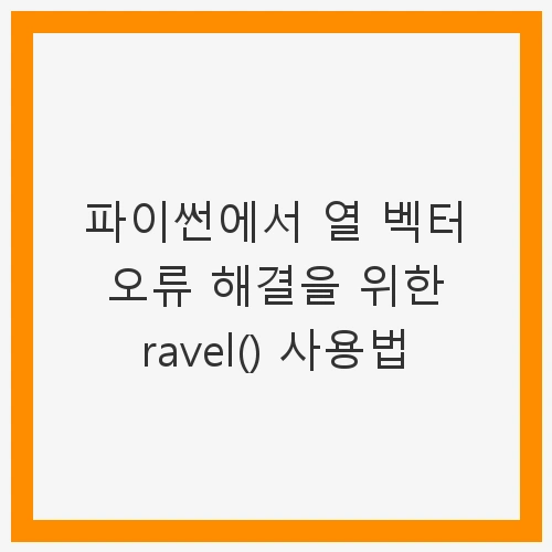 열 벡터 오류를 해결하기 위한 ravel() 함수의 사용법을 이해하고 활용하는 것은 데이터 과학자 및 분석가에게 매우 중요합니다. 실습을 통해 이 함수를 익히고, 자신의 코드에 적용해 보는 시간을 가져보세요. 이를 통해 더 나은 데이터 처리 능력을 기르고, 파이썬을 활용한 데이터 분석의 품질을 높일 수 있을 것입니다.