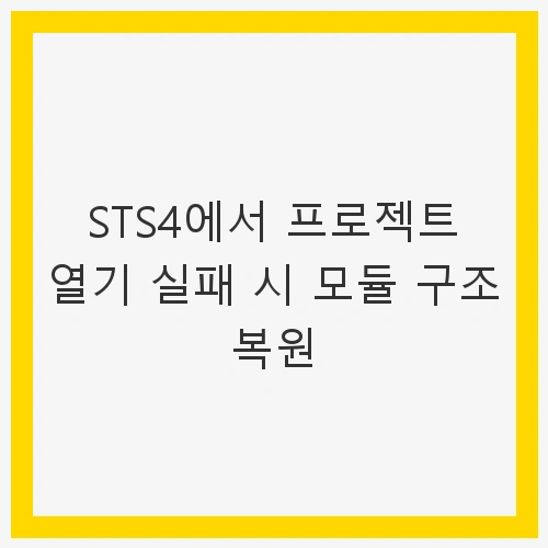 프로젝트 열기에 실패하는 경우는 여러 가지가 있습니다. 예를 들어, 프로젝트 파일이 손상되었다거나 작업 중에 잘못된 변동이 있었을 수 있습니다. 이러한 문제를 해결하기 위해선 먼저 문제의 원인을 파악하고, 그에 맞는 적절한 조치를 취해야 합니다. 이 글에서는 STS4의 모듈 구조를 복원하는 방법 및 주의사항에 대해 설명합니다.